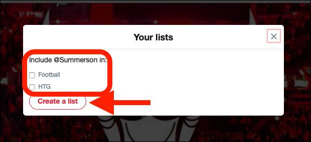 Klicken (oder tippen) Sie auf die Liste, zu der Sie jemanden hinzufügen möchten. Wenn Sie eine neue Liste erstellen möchten, klicken Sie auf die Schaltfläche "Liste erstellen" (oder tippen Sie auf dem Handy auf das Symbol "Neu"). Klicken Sie auf (oder tippen Sie auf), um die Liste zu deaktivieren, aus der Sie jemanden entfernen möchten.