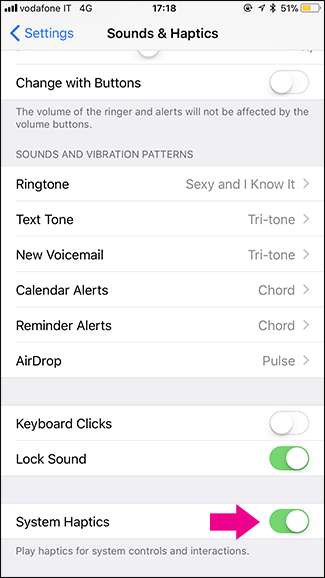 Gehen Sie zu Einstellungen> Sounds und Haptik und deaktivieren Sie die Systemhaptik. Ironischerweise bekommst du dabei einen kleinen Taptic-Kick.