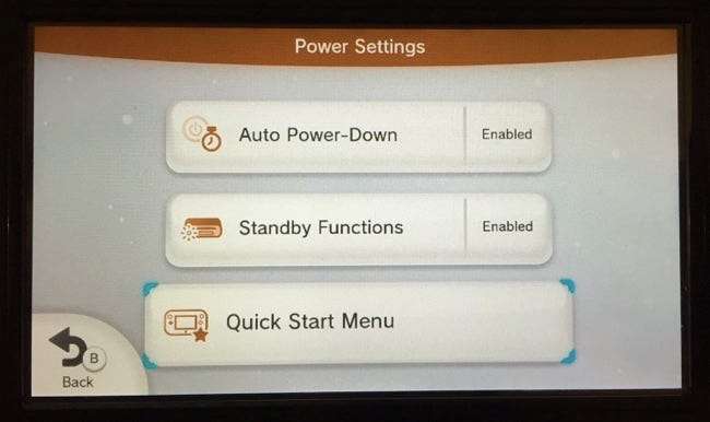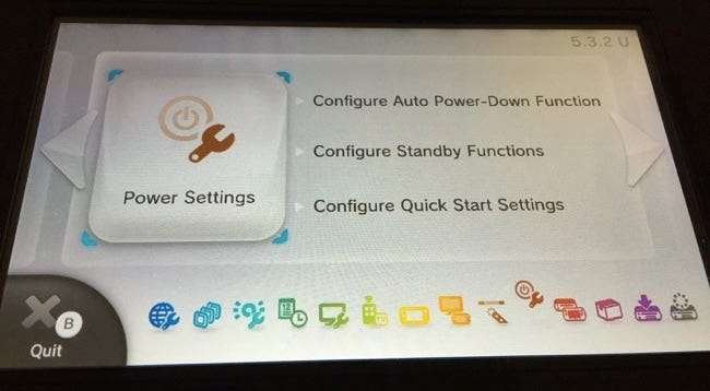 Tippen Sie unten auf dem Bildschirm auf die Option „Schnellstartmenü“. Das Schnellstartmenü ist das Menü, das auf Ihrem GamePad angezeigt wird, bevor die Wii U vollständig gestartet wurde, sodass Sie die Wii U schnell mit bestimmten Spielen starten können. Dies ist der Teil des Betriebssystems der Wii U, der diese Warnungen anzeigt.