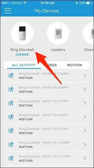 Öffnen Sie zunächst die App und tippen Sie auf Ihre Klingeltürklingel in der oberen linken Ecke des Bildschirms.
