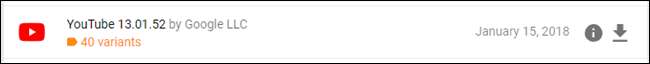 In diesem Sinne kehren wir zu unserem obigen YouTube-Beispiel zurück. Wir werden uns das ansehen viele Versionen von YouTube auf APK Mirror und finde genau, welcher Download für mein Pixel 2 XL gilt. Mit den vorliegenden Geräteinformationen wissen wir, dass ein 64-Bit-ARM-Prozessor ausgeführt wird, eine DPI von 560 hat und Android 8.1 ausgeführt wird.