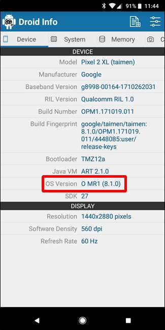 Informationen zur Android-Version finden Sie in der Betriebssystemversion im Abschnitt Gerät. Dadurch wird die Versionsnummer explizit angezeigt.