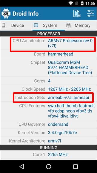 Diese Informationen sind besonders wichtig, da x86- und ARM-Dateien nicht miteinander kompatibel sind. Sie müssen die Version verwenden, die für die spezifische Architektur Ihres Telefons entwickelt wurde.