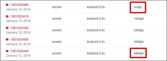 Wir haben also zwei Hauptoptionen zur Auswahl: die höchste verfügbare DPI - in diesem Fall 480 oder „nodpi“.