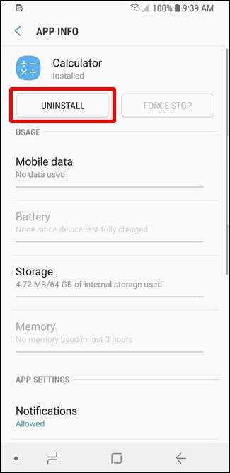 Tippen Sie im Menü Apps auf eine App, die Sie entfernen möchten. Hier gibt es wahrscheinlich eine von zwei Optionen: Deinstallieren oder Deaktivieren. Während Ersteres die App von Ihrem Telefon entfernt, versetzt Letzteres sie einfach in einen „Ruhezustand“. Es wird nicht in der App-Schublade angezeigt und Sie erhalten keine Benachrichtigungen. In jeder Hinsicht ist es weg.