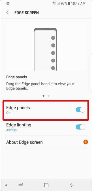 Zum Glück können Sie sie ausschalten. Wechseln Sie zu Einstellungen> Anzeige> Kantenbildschirm und tippen Sie dann auf den Schalter „Kantenfelder“, um sie auszuschalten.