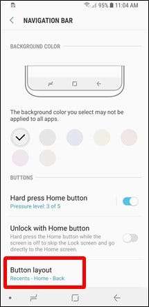Die gute Nachricht ist, dass Sie es ändern können. Da Samsung diese dumme Home-Taste mit dem S8 endgültig fallen ließ und zu den Bildschirmtasten wechselte, sind sie anpassbar. Gehen Sie zu Einstellungen> Anzeige> Navigationsleiste> Schaltflächenlayout, um das Problem zu beheben.