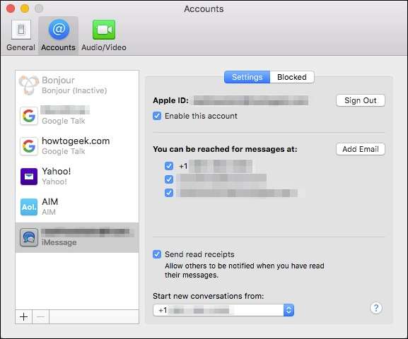 Öffnen Sie zuerst Nachrichten und dann die Einstellungen, indem Sie entweder auf das Menü "Nachrichten" klicken oder die Tastenkombination "Befehl +" verwenden. Klicken Sie nach dem Zugriff auf die Einstellungen auf die Registerkarte "Konten". Klicken Sie im linken Bereich auf die Option "iMessage". Wie beim iPad wird die Option zum Aktivieren Ihrer Telefonnummer angezeigt.