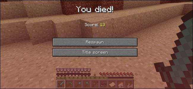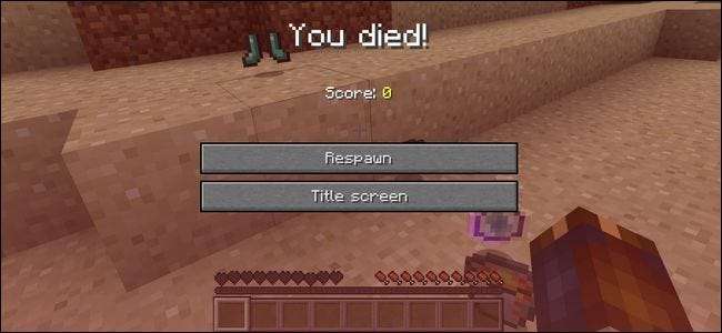 Sieh dir das an! Wir sind tot, aber wir halten immer noch unser Schwert. Die Rüstungsanzeige über unserer Symbolleiste zeigt an, dass wir immer noch unsere Rüstung tragen, und die Symbolleiste selbst ist immer noch mit unseren Vorräten beladen. Als zusätzlichen Bonus werden Sie darüber hinaus feststellen, dass keine Erfahrungskugeln im Umlauf sind. Wenn das Flag "keepInventory" aktiviert ist, lassen Sie auch keine Erfahrungskugeln fallen. (Es würde uns nichts ausmachen, dies zu optimieren, sodass Sie Erfahrung verloren haben, aber nicht Ihre Beute, aber derzeit gibt es keine Spielregel dafür.)