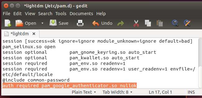 Das "nullok" -Bit am Ende weist das System an, einen Benutzer anmelden zu lassen, auch wenn er den Befehl google-authentulator nicht ausgeführt hat, um die Zwei-Faktor-Authentifizierung einzurichten. Wenn sie es eingerichtet haben, müssen sie einen Zeitcode eingeben - andernfalls werden sie es nicht tun. Entfernen Sie das "Nullok", und Benutzerkonten, die keinen Google Authenticator-Code eingerichtet haben, können sich nicht grafisch anmelden.