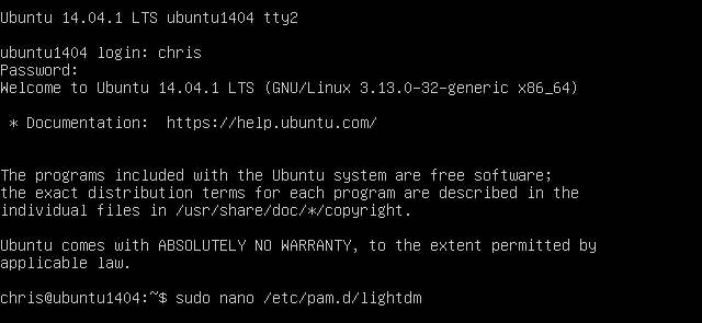 Da wir dies nur für grafische Anmeldungen aktiviert haben, sollte es leicht zu deaktivieren sein, wenn es ein Problem verursacht. Drücken Sie eine Tastenkombination wie Strg + Alt + F2, um auf ein virtuelles Terminal zuzugreifen und melden Sie sich dort mit Ihrem Benutzernamen und Passwort an. Sie können dann einen Befehl wie sudo nano /etc/pam.d/lightdm verwenden, um die Datei zur Bearbeitung in einem Terminal-Texteditor zu öffnen. Verwenden unser Führer zu Nano Wenn Sie die Zeile entfernen und die Datei speichern möchten, können Sie sich wieder normal anmelden.
