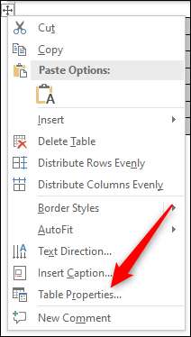 Wählen Sie "Tabelleneigenschaften" aus dem Menü aus.