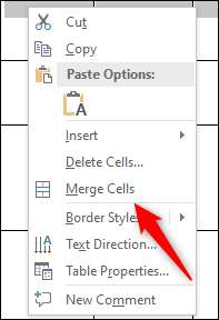 Ein Dropdown-Menü wird angezeigt. Klicken Sie auf "Zellen zusammenführen".