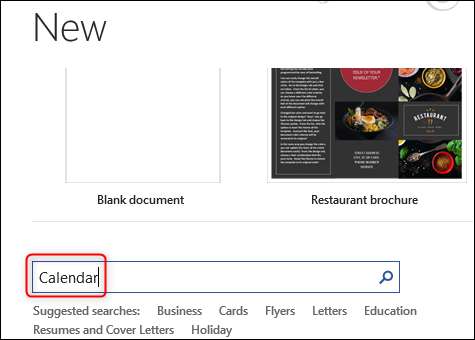 Geben Sie "Kalender" in das Suchfeld Online-Vorlagen ein.