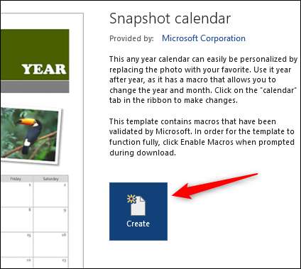 Ein Popup-Fenster erscheint eine Vorschau und eine Beschreibung des Kalenders. Klicken Sie auf "Erstellen".