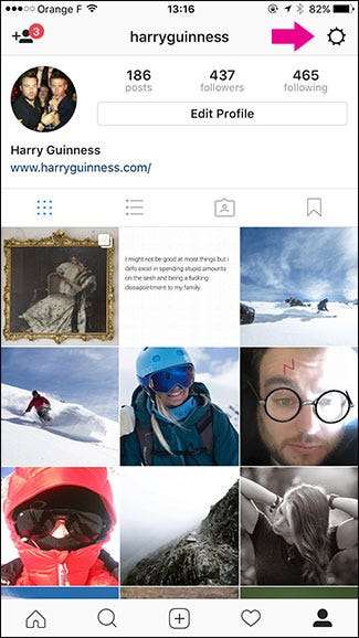Öffne Instagram und gehe zu deiner Profilseite. Klicken Sie oben rechts auf das Symbol Einstellungen.