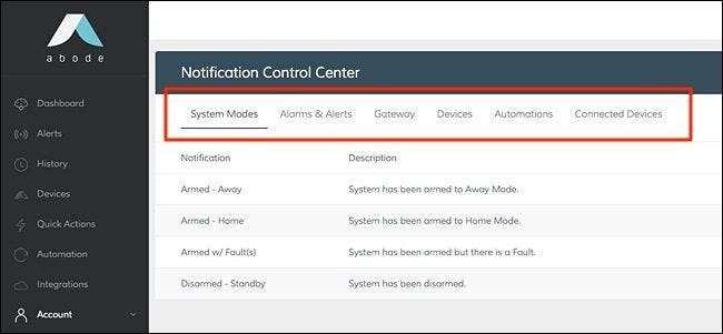 Möglicherweise stellen Sie fest, dass einige Kontrollkästchen abgeblendet sind und nicht geändert werden können. Diese Elemente werden als wichtig erachtet, und Abode ermöglicht es Ihnen nicht, Benachrichtigungen für diese bestimmten Elemente zu deaktivieren.