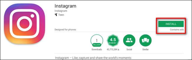 Genau wie bei der Verwendung eines tatsächlichen Mobilgeräts klicken Sie auf "Installieren" und akzeptieren die Dinge, auf die Instagram zugreifen darf (wie Ihre Mediendateien).