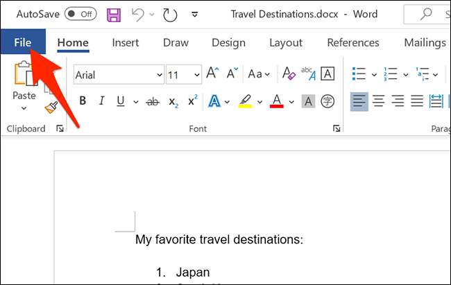 Klicken Sie in dem Wortfenster, das in der oberen linken Ecke öffnet, auf die Option "Datei" klicken.