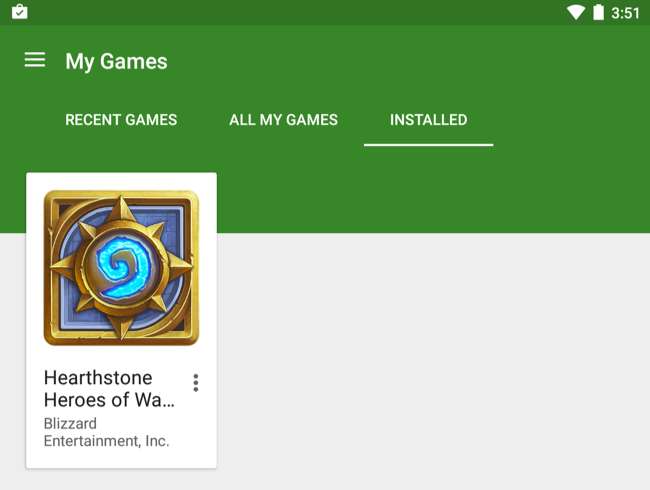 Öffnen Sie dazu die auf Ihrem Android-Gerät installierte App "Google Play Games". Sie können sie von Google Play herunterladen, wenn Sie sie noch nicht haben. Starten Sie es, wählen Sie im Menü "Meine Spiele" und tippen Sie auf die Registerkarte "Installiert", um die von Ihnen installierten Spiele anzuzeigen.