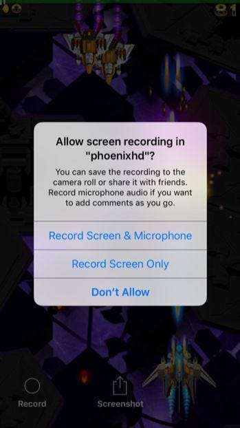 In jedem Spiel, das dies unterstützt, können Sie auf die Schaltfläche "Aufnehmen" tippen und wählen, ob Sie nur den Bildschirm aufnehmen möchten oder ob Sie auch Audio von Ihrem Mikrofon aufnehmen möchten. Diese Schaltfläche sieht in jedem Spiel anders aus und befindet sich an einer anderen Stelle.