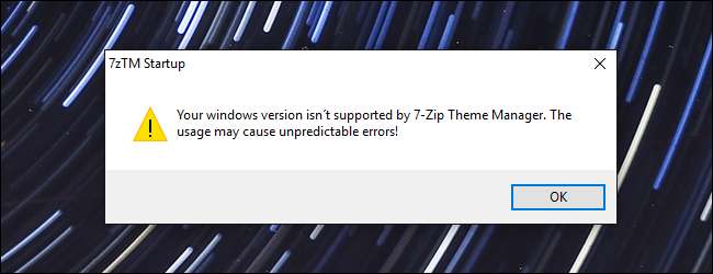 Wenn Sie unter Windows 10 arbeiten, wird möglicherweise eine Warnung angezeigt, dass der 7-Zip Theme Manager in Ihrer Windows-Version nicht unterstützt wird. Klicken Sie einfach auf "OK". Ich habe es unter Windows 10 verwendet und keine Probleme festgestellt.