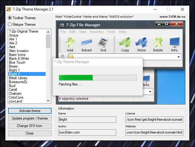 Das Anwenden Ihres Themas dauert eine Minute. Wenn dies erledigt ist, können Sie 7-Zip öffnen, um Ihre viel attraktiveren Symbole anzuzeigen.
