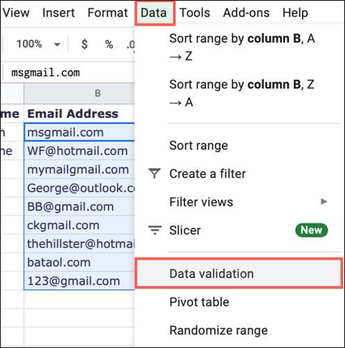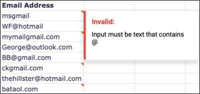 Wenn du bist Verwenden von Google-Blättern Für E-Mail-Adressen, möglicherweise für Kunden, Kunden oder Mitarbeiter, möchten Sie sicherstellen, dass die Daten korrekt eingegeben werden. Eine Möglichkeit, dies zu tun, ist, das Format zu bestätigen, um zu bestätigen, dass es eine E-Mail-Adresse ist.