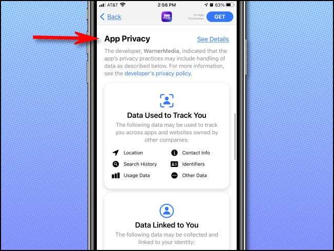Um weitere Informationen zu einem dieser Abschnitte zu erhalten, tippen Sie auf die Schaltfläche "Details anzeigen", die sich neben dem Header "App Privacy" befindet.