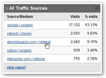 In diesem Beispiel sehen wir uns den StumbleUpon-Verkehr an, indem wir in der Quellenliste darauf klicken.