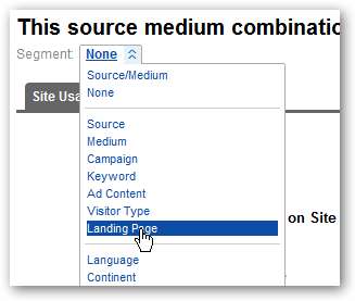 Wählen Sie nun "Landing Page" aus dem Dropdown-Menü "Segment".
