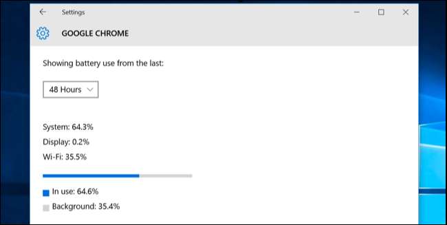 Der Bildschirm zur Akkunutzung bietet Optionen zum Steuern, ob Windows 10-Apps im Hintergrund ausgeführt werden können. Dies sollte Ihnen helfen, wenn Sie diesen App-Typ verwenden. Es gibt jedoch keine Möglichkeit, Windows-Desktop-Apps über den Einstellungsbildschirm zu steuern.
