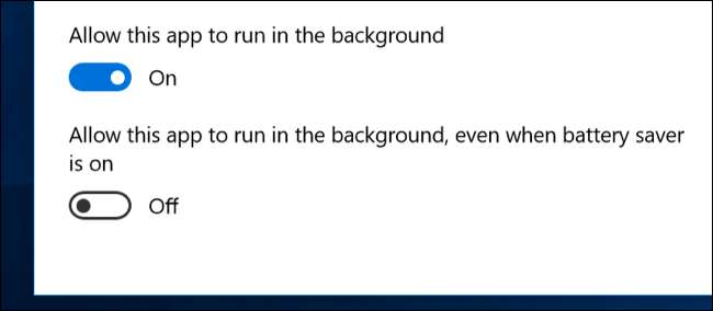 Wenn Apps im Hintergrund Strom verbrauchen, können Sie auf den Link „Hintergrund-App-Einstellungen ändern“ klicken oder darauf tippen und Apps so konfigurieren, dass sie nicht im Hintergrund ausgeführt werden. Dies funktioniert nur für universelle Windows 10-Apps. Sie erhalten nicht automatisch Benachrichtigungen, rufen keine neuen Daten für Live-Kacheln ab oder führen andere Hintergrundaufgaben aus. Dies kann Ihnen helfen, Batteriestrom zu sparen, insbesondere wenn Sie diese neuen Windows 10-Apps nicht verwenden.