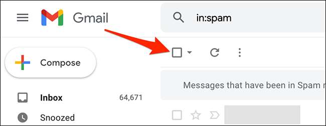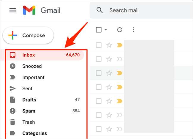 Wählen Sie auf der Google Mail-Schnittstelle von der Seitenleiste nach links den Ordner aus, in dem Sie E-Mails auswählen möchten. Dies kann ein beliebiger Ordner sein, der in der Seitenleiste aufgeführt ist (einschließlich "Posteingang", "Snoozed", "Sendet" und "Spam".)