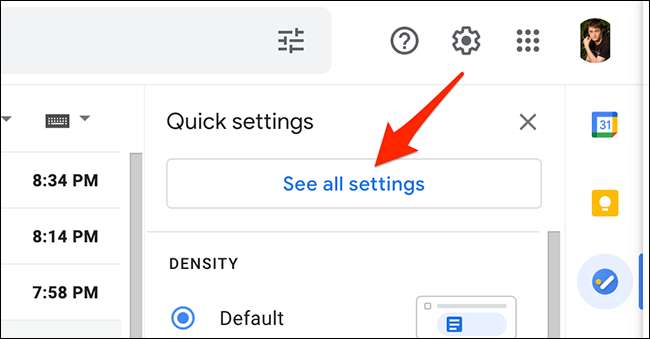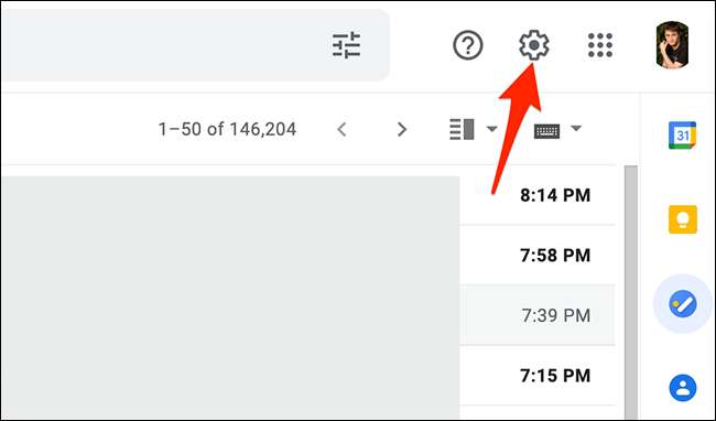 Um weitere E-Mails auszuwählen, ändern Sie eine Option in den Einstellungen von Google Mail, sodass sie weitere E-Mails auf einer einzigen Seite anzeigt. Wählen Sie dazu aus der oberen rechten Ecke der Google Mail-Site die Option "Einstellungen" (Getriebe-Symbol).