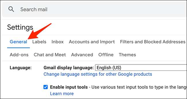 Google Mail zeigt Ihre vollständigen Kontoeinstellungen an. Klicken Sie oben oben auf die Registerkarte "Allgemein".