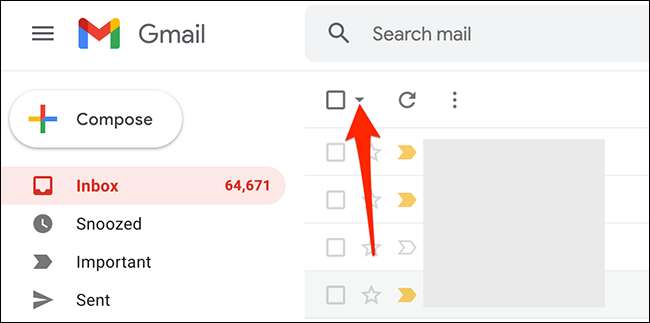 Klicken Sie oben in Ihrer E-Mails an, direkt neben der Option "Select", klicken Sie auf das Down-Pfeil-Symbol.