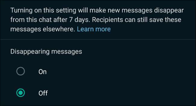 Nachrichten, die ausgetauscht werden, bevor diese Änderung nicht betroffen sind. Sie können die verschwindenden Meldungen ausschalten, indem Sie auf diese Option zurückkehren.