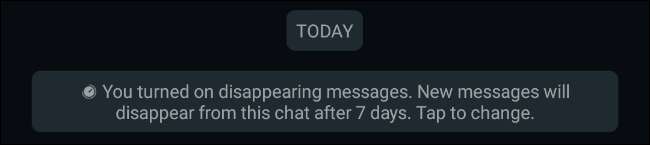 Umschalten der Option "ON", um Verschwinden von Nachrichten für diesen Chat zu aktivieren.