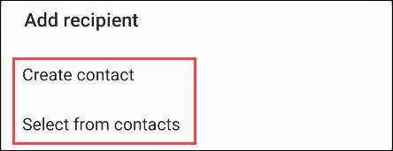 Wählen Sie aus, wie Sie einen Empfänger hinzufügen möchten, und erstellen Sie einen Kontakt oder wählen Sie Personen aus Ihrer Kontaktliste aus.