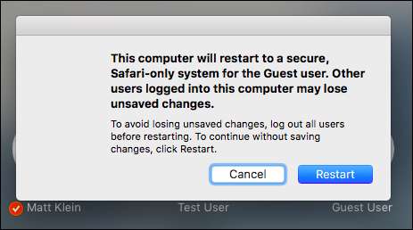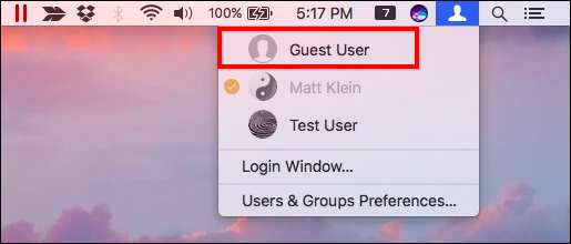 Wenn FileVault jedoch deaktiviert ist, ist das Gastkonto viel nützlicher. Zum einen können sich Gäste mit anmelden schneller Benutzerwechsel Dies bedeutet, dass sich niemand von seinem Konto abmelden muss, um den Computer neu zu starten.