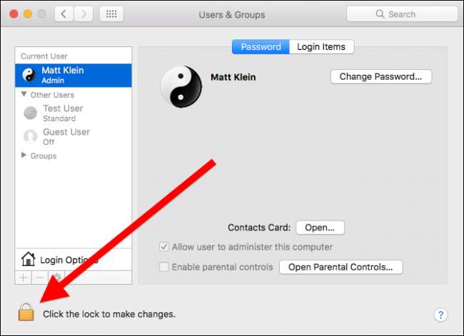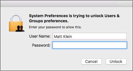 Geben Sie Ihr Systemkennwort ein, um die Einstellungen für Benutzer und Gruppen zu entsperren.