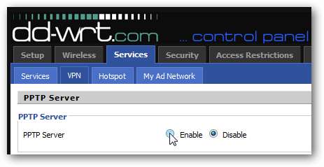 Wir haben zuvor abgedeckt So richten Sie einen PPTP-VPN-Server unter Debian Linux ein Hier auf Sysadmin Geek. Wenn Sie jedoch bereits einen DD-WRT-Firmware-basierten Router in Ihrem Netzwerk verwenden, können Sie Ihren Router einfach so konfigurieren, dass er als PPTP-VPN-Server fungiert.