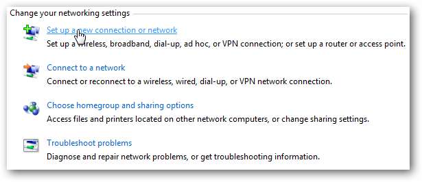 Klicken Sie im Netzwerk- und Freigabecenter der Systemsteuerung auf die Option zum Einrichten einer neuen Netzwerkverbindung.