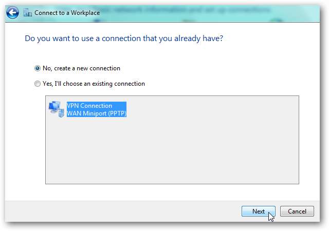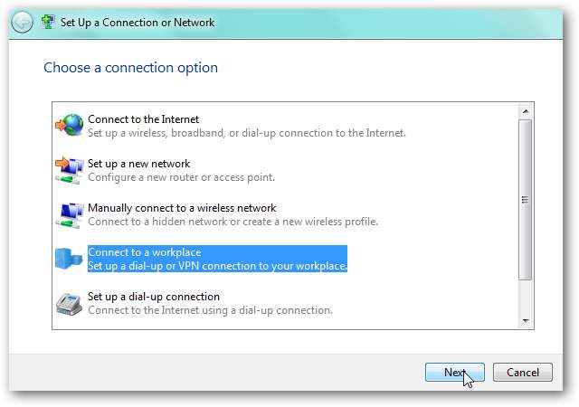 Wählen Sie die Option zum Herstellen einer Verbindung zu einem Arbeitsplatz-VPN.