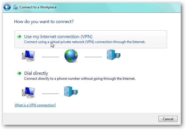 Wählen Sie die Option, über Ihre Internetverbindung eine Verbindung zum VPN herzustellen.