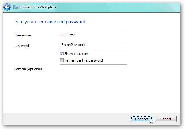 Geben Sie die Anmeldeinformationen für Ihre VPN-Anmeldung ein, die in den DD-WRT-Router-Einstellungen konfiguriert wurden. Klicken Sie auf Verbinden.
