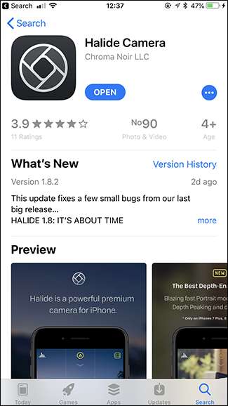 Die Standard-iOS-Kamera-App unterstützt das Aufnehmen von RAW-Fotos nicht. Daher müssen Sie stattdessen eine Drittanbieter-App verwenden. Es gibt einige Optionen, aber unsere beiden Favoriten sind VSCO (kostenlos) und Halogenidkamera ($5.99).