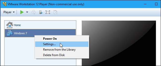 Wählen Sie die ausgeschaltete virtuelle Maschine aus und klicken Sie auf "Einstellungen der virtuellen Maschine bearbeiten" oder klicken Sie mit der rechten Maustaste darauf und wählen Sie "Einstellungen".