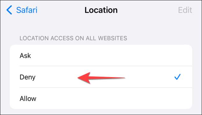 Nach dem Deaktivieren können Websites keine Standortdienste in Safari auf Ihrem iPhone oder iPad verwenden.